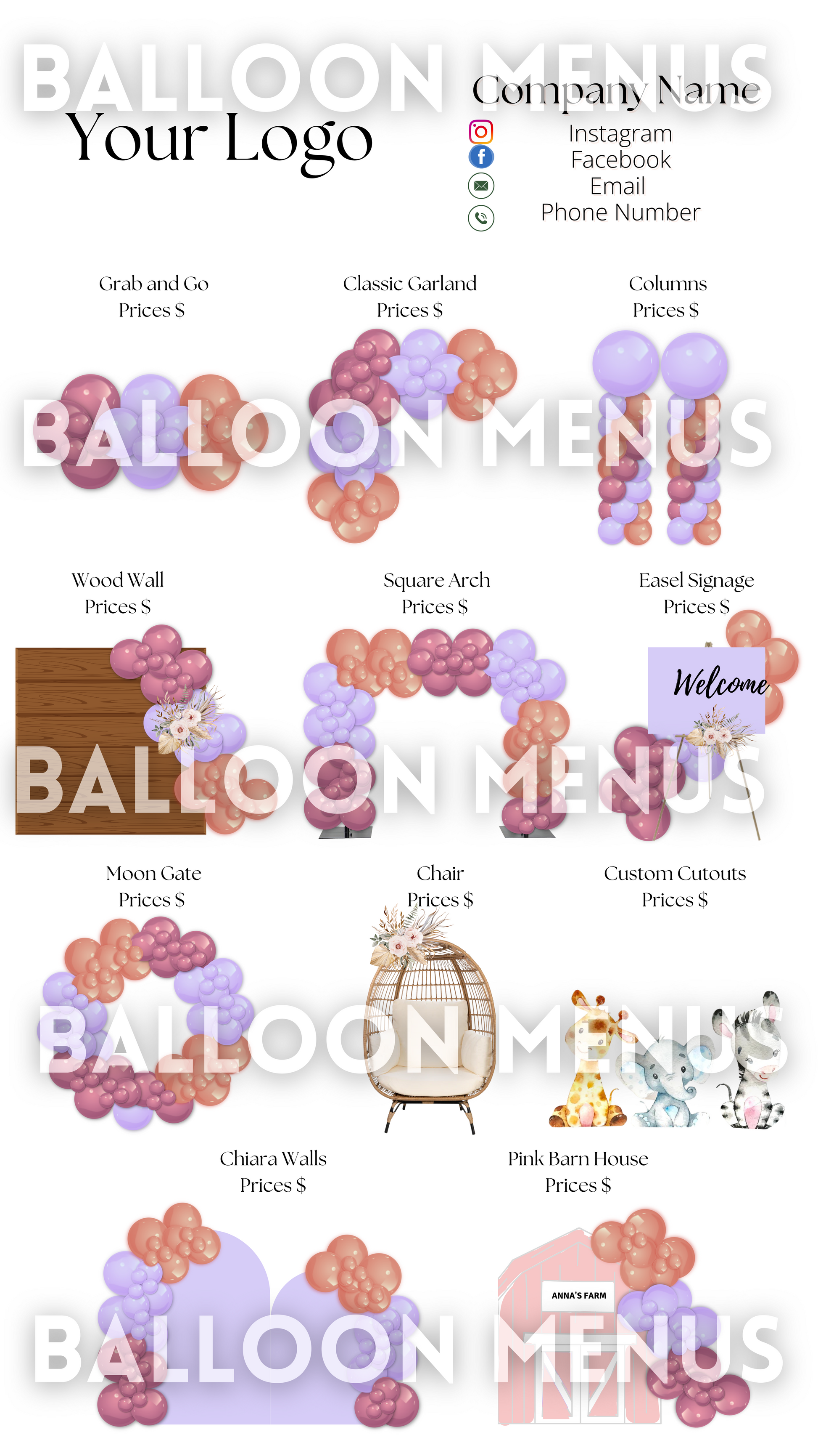 Make party planning easier and effortless with our Digital Balloon Menu! Designed to help party planners showcase their services and give clients a clear preview of offerings, this fully editable menu is a must-have tool for your business!