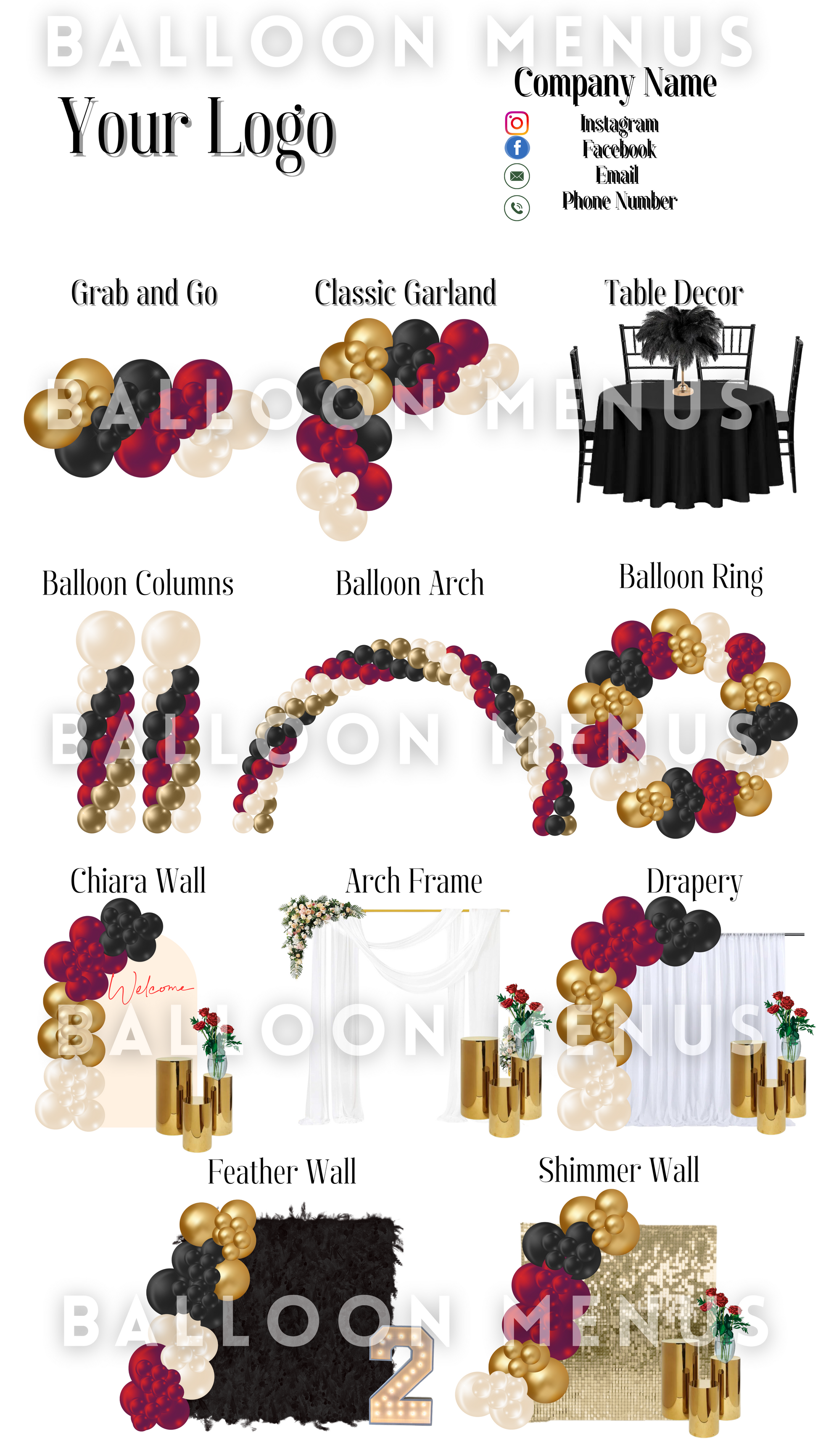 Premade Editable large Balloon Menu (Red, Gold, Black, Cream)