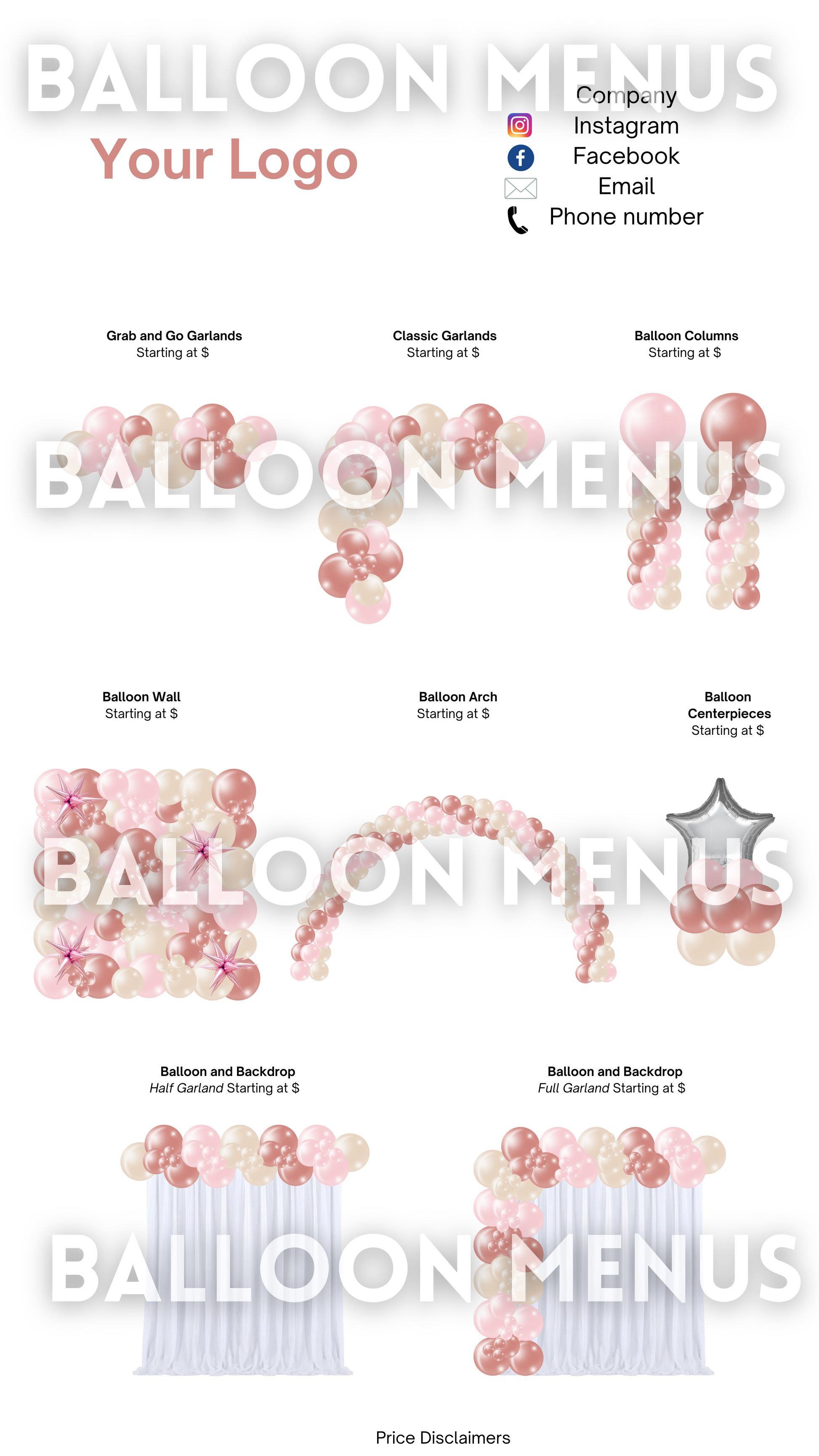 Make party planning easier and effortless with our Digital Balloon Menu! Designed to help party planners showcase their services and give clients a clear preview of offerings, this fully editable menu is a must-have tool for your business!
